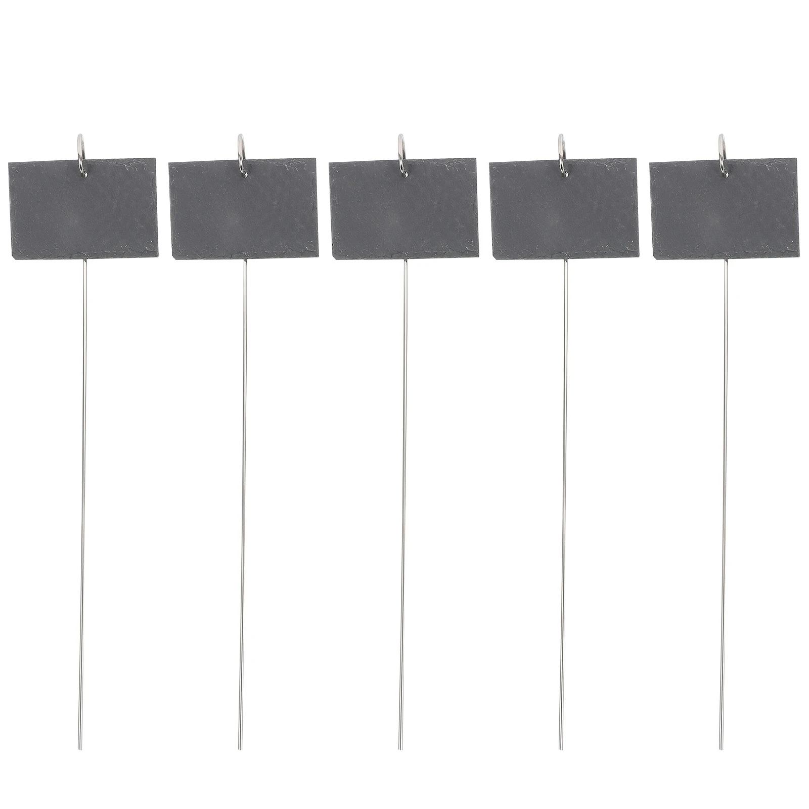 GardenMate 5-Pack Natural Style Slate Plant Labels (4" x 2 3/4") Hanging from a Stainless Steel Metal Rod (17")